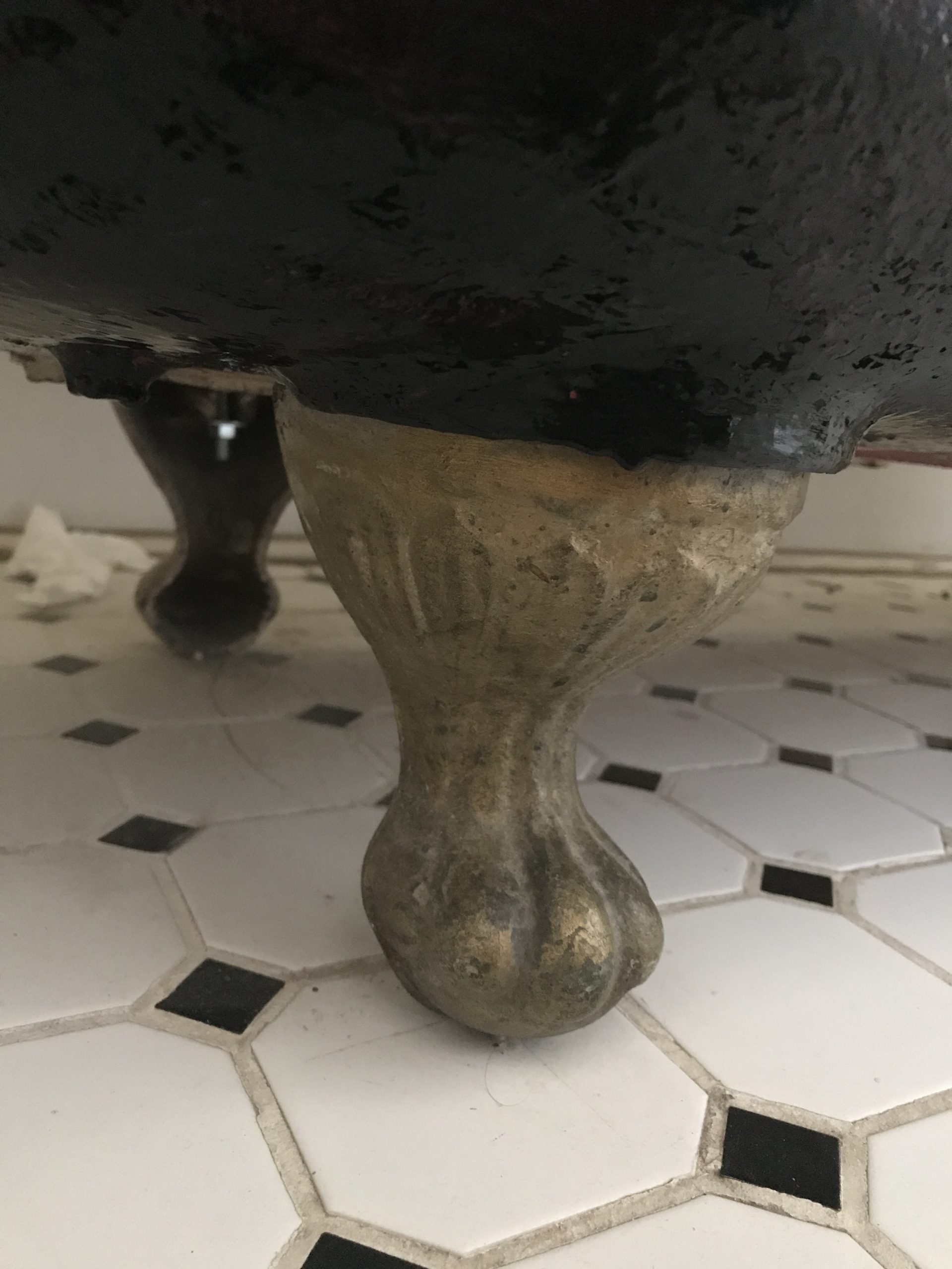 I absolutely ADORE the clawfeet… they may be my favorite little detail in the entire bathroom. Rust-oleum is a FABULOUS product to work with. This is only a single coat and I have 99.99% of the quart still remaining. Now to find other things to paint…