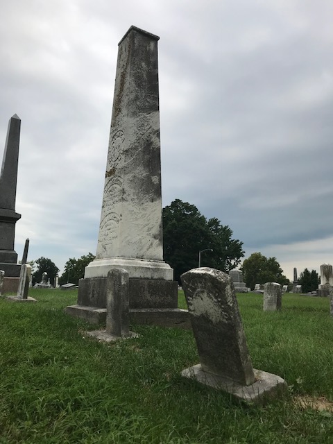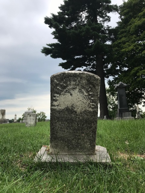 At the Hilgard plot, you see a tall obelisk dedicated to Theodore and Emma. It is surrounded by headstones where the names are too eroded to read. Going off of the plot grid and information online, we were able to determine which headstones belong to who. In the place where Baby Julia could lie, there’s an ineligible marker. The website lists her name on this plot and says that she was laid to rest next to her Grandparents’ marker– the obelisk. This headstone is next to the obelisk and we believe it’s for Julia.