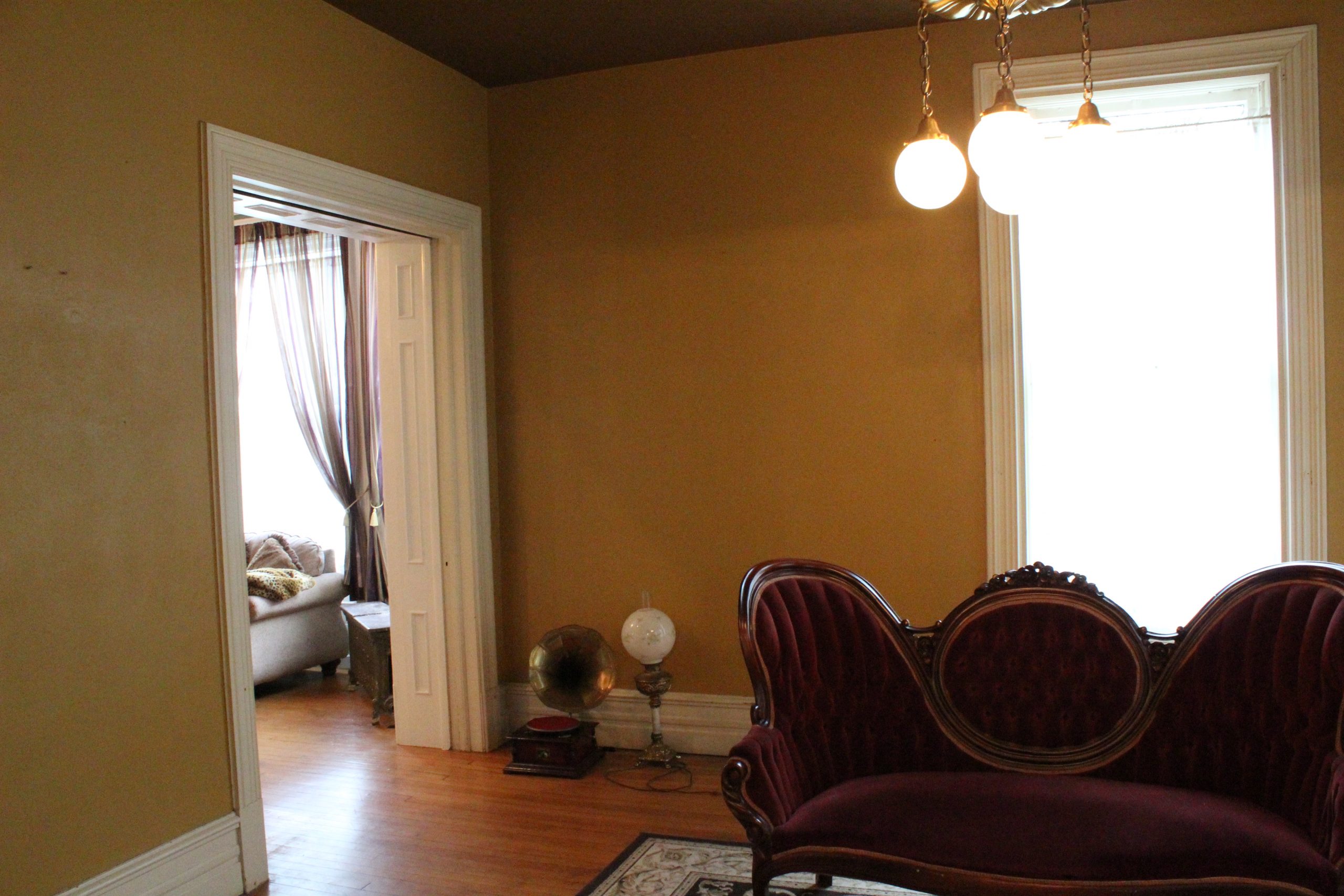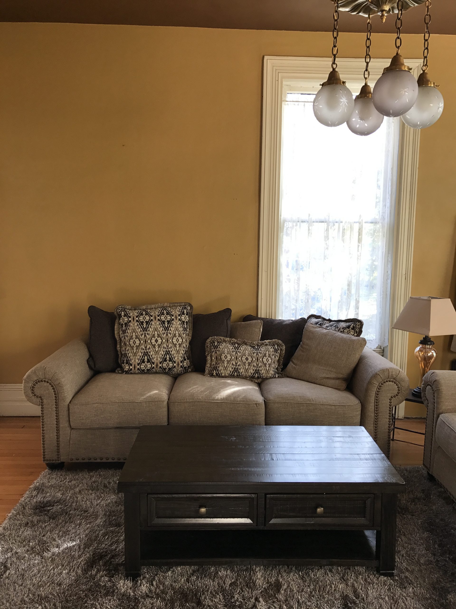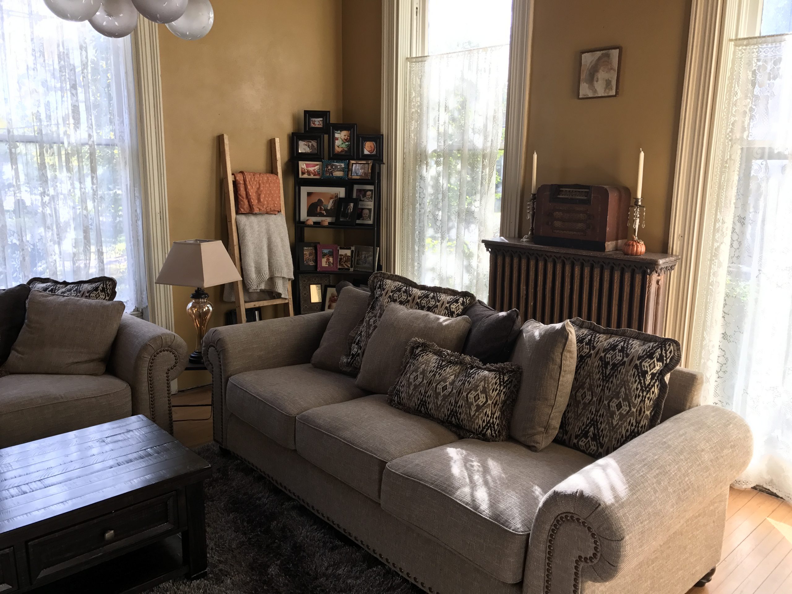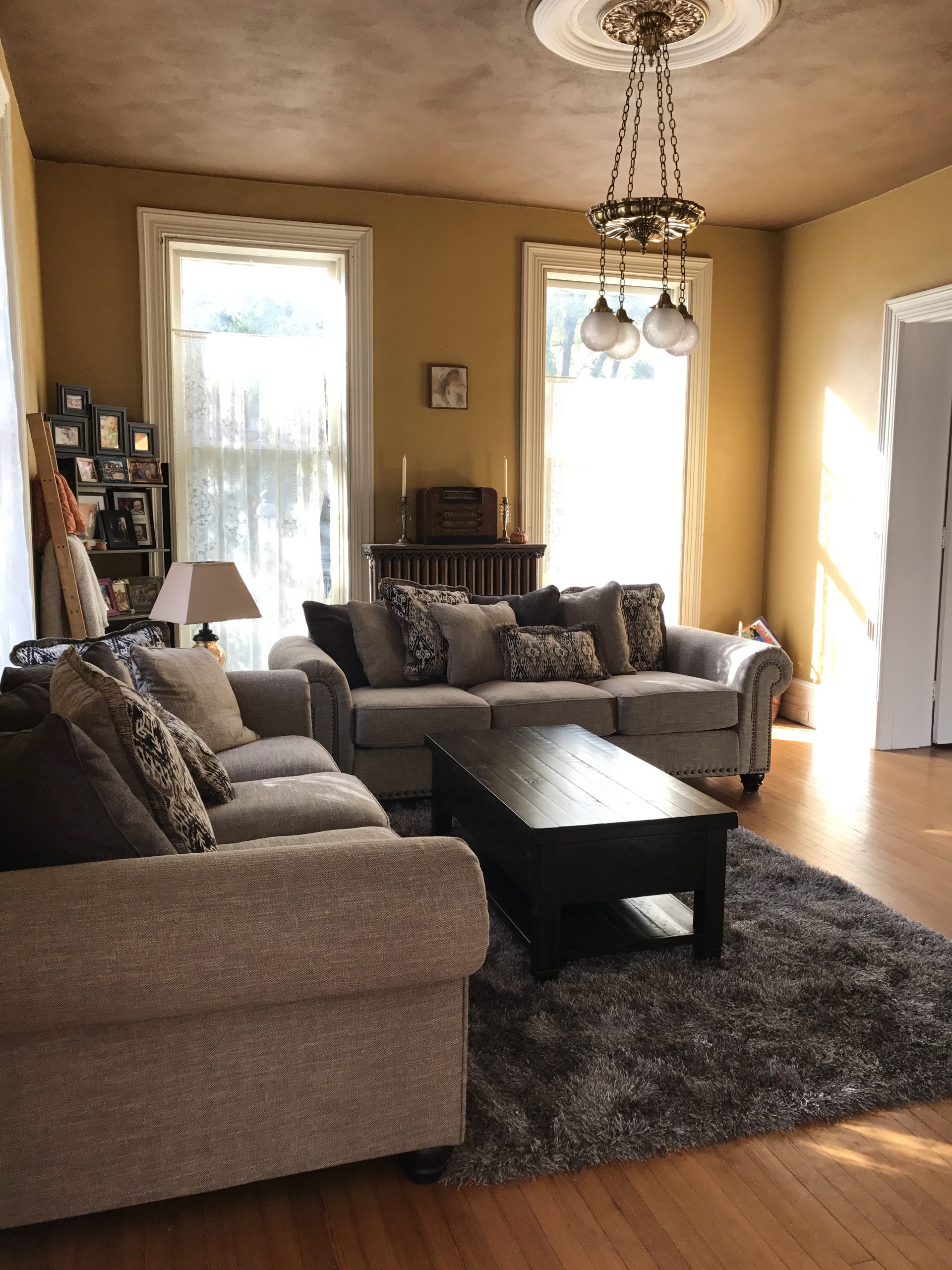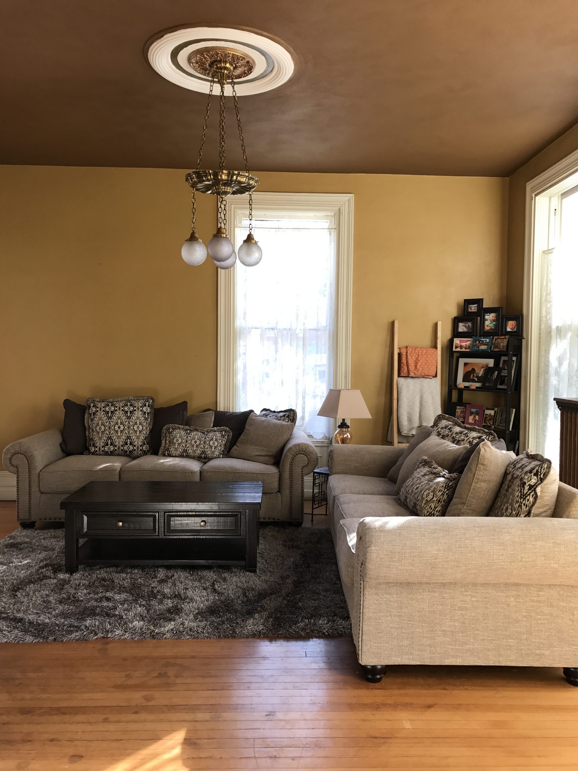 We listed the couches on Facebook Marketplace and then went to pick out something that fit better in the space. The room is classically Victorian. Huge 12′ windows, pocket doors, a beautiful light fixture, and a fireplace that is the focal point of the room. Part of the struggle was wanting to maintain a historic feel while ALSO being comfortable. This is our home and we live in it… we didn’t want to sacrifice style for comfort or history for modern convenience. I think what we ended up with is the perfect blend of plushness without being fussy.