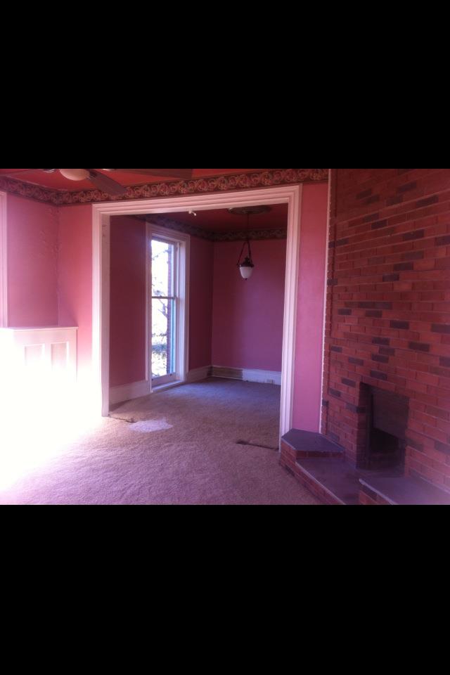 As you can see, when the previous owners took over it was… pink. Very. Pink. Wallpaper borders and 1970s brick and really old carpet and… pink.