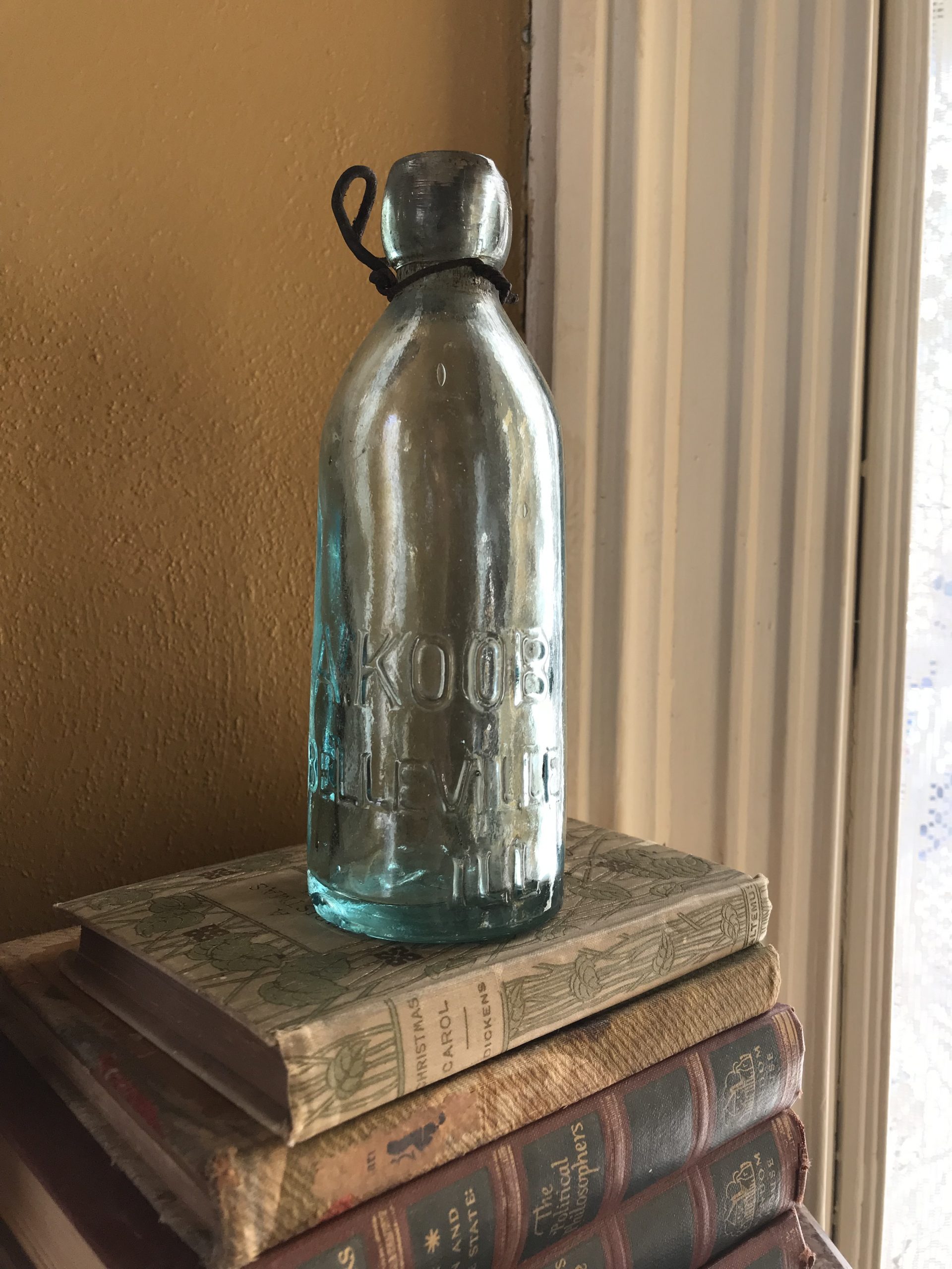 So Koob brand soda was bottled using Belleville Glass Company bottles and this would have had to have happened sometime between 1882 (when the glass company was made) and 1888 (when the soda company was sold). Since our house was built in 1887 and we found this up on the 3rd floor, perhaps it was a refreshment for some hardworking home builder?