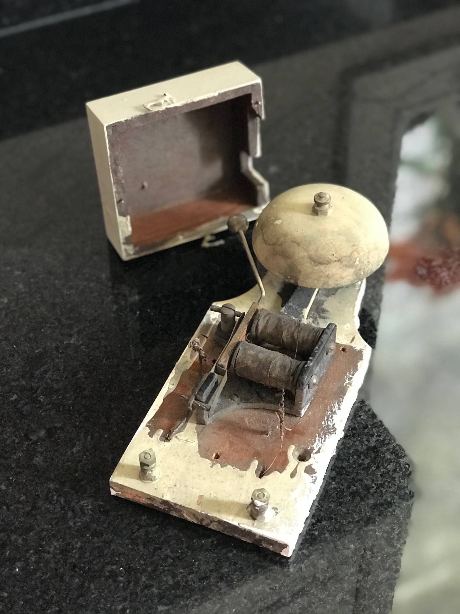 The doorbell itself is, at its core, simple, though advanced for the time. The fact that the Romeisers even HAD a doorbell is impressive. However, knowing how Peter Romeiser was at the forefront of basically every advancement and was a very progressive thinker, I’m not surprised. His store, The Romeiser Company, changed the way businesses operate. He was one of the first merchants to use a set-price model for his items… the price you see on the tag is what you pay, no haggling. His store was the first in Belleville to use interior electricity. We know for a fact he had a home telephone in 1906– if not earlier. He saw the value in invention, the beauty in progress, and he wanted to be a part of that.